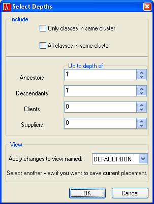 - If you want to change the context of the current cluster or class in the diagram, click the Select depth of relations button.