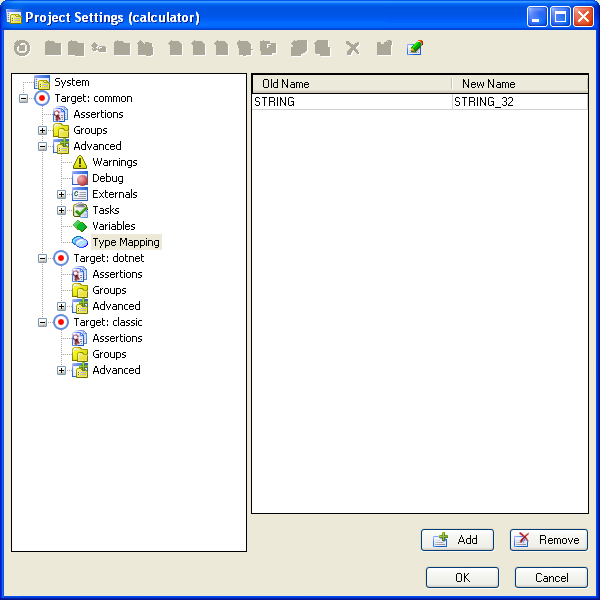 Type mappings map one class name to another. E.g. STRING can be mapped to STRING_32. So whenever STRING is used in a class, STRING_32 will be used instead.