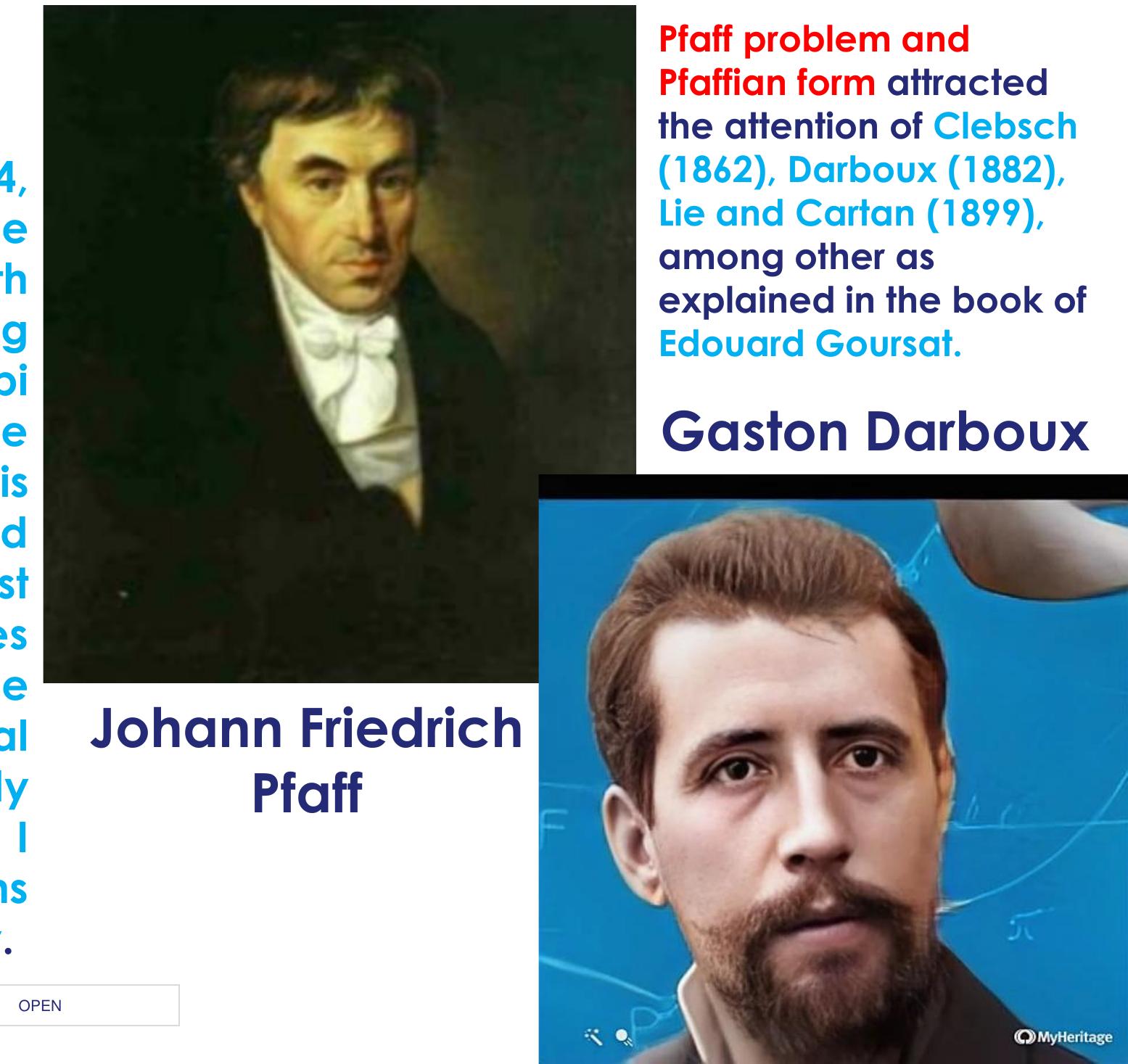 As observed by Georges Reeb "Thermodynamics has long accustomed mathematical physics [see DUHEM P.] to the consideration of completely integrable Pfaff forms: the elementary heat dQ [notation of thermodynamicists] representing the elementary heat yielded in an infinitesimal reversible modification is such a completely integrable form. This point does not seem to have been explored since then." Notion of foliation in thermodynamics appears in C. Carathéodory paper where horizontal curves roughly correspond to adiabatic processes, performed in the language of Carnot cycles. The properties of the couple of Poisson manifolds was previously explored by C. Carathéodory in 1935, under the name of “function groups, polar to each other”. This seminal work of C. Caratheodory leads to the concept of a Poisson structure which was first defined independently by Lichnerowicz and Kirillov.